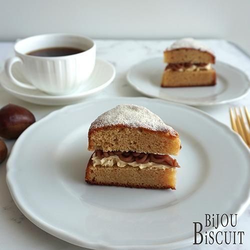 しっとりとした少し重めのグルテンフリースポンジ生地に、フランスのマロンピュレを使った自家製マロンペーストとグラスフェッドバタークリームをたっぷりサンド。