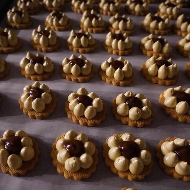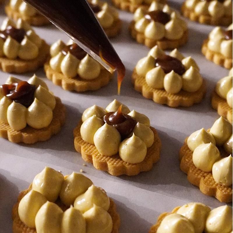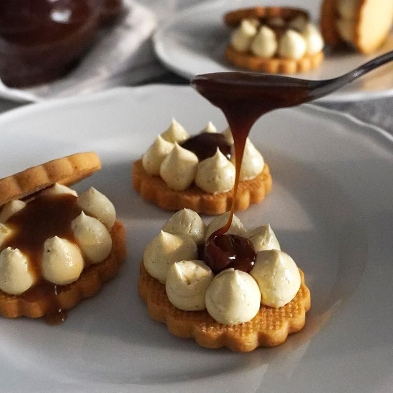 純生クリームと素焚糖で作った自家製のほろ苦キャラメルを、バタークリームの真ん中にたらり。