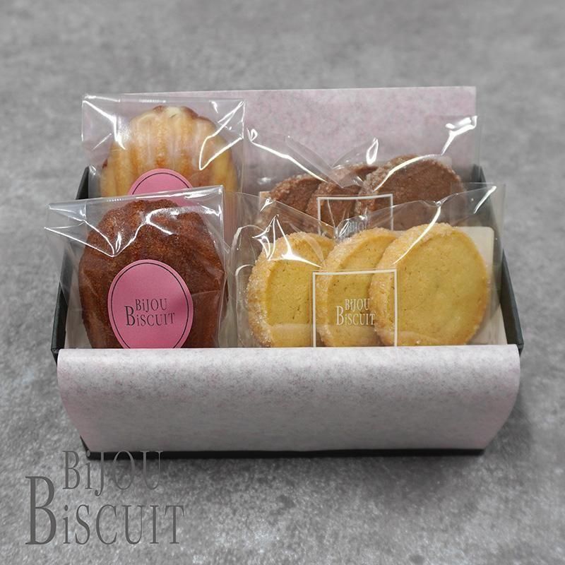 職人さんがひとつひとつ手作業で仕上げたBijou Biscuitオリジナルギフトボックスに入れ、リボンをおかけして発送します。上質でシンプルなものを好む方への贈り物にぜひ。