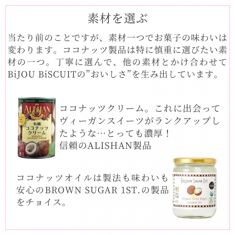 オーガニックココナッツクリームとスペイン産マルコナ種のアーモンド粉を贅沢に使った