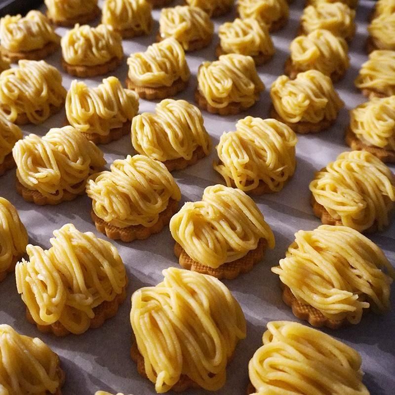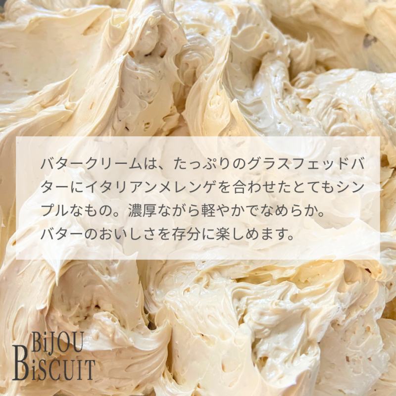 さつまいもとバターの相性は言うまでもないですが、グラスフェッドバターでつくるバタークリームと丁寧に裏ごししたなめらかなさつまいもペーストはさらにリッチで華やかな味わい。