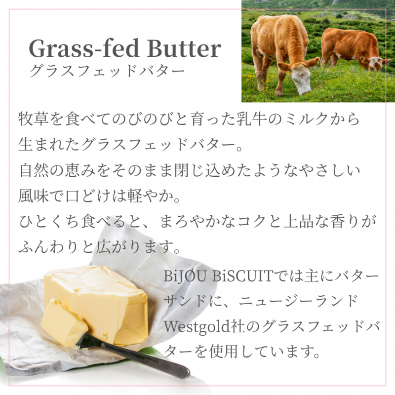 グラスフェッドバターは、農薬などの心配がない牧草だけを食べて放牧で育った牛のミルクから作られたバター。