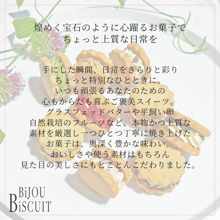 味わい深いオーガニックココアを使ったココアサブレにラズベリーピュレを混ぜ込んだピンクのバタークリームを絞り、クーベルチュールチョコレートをトッピング。
